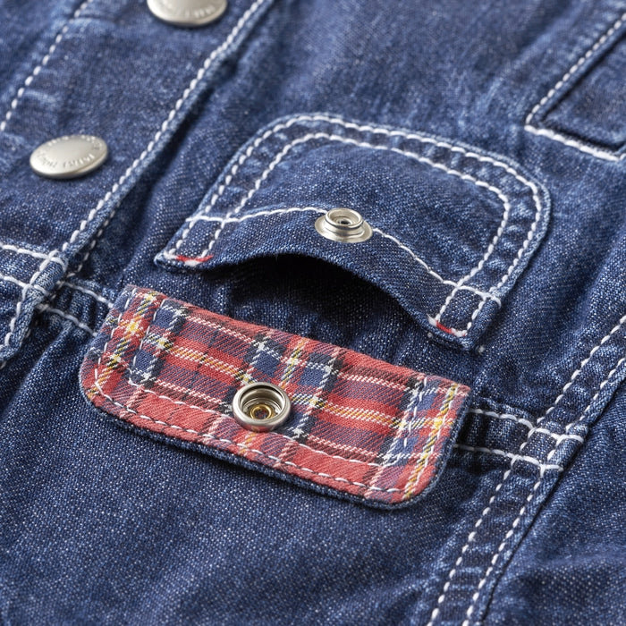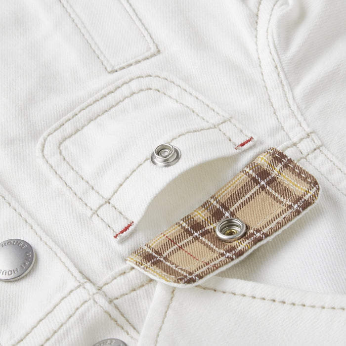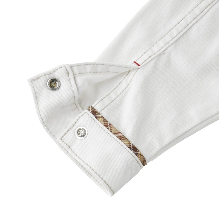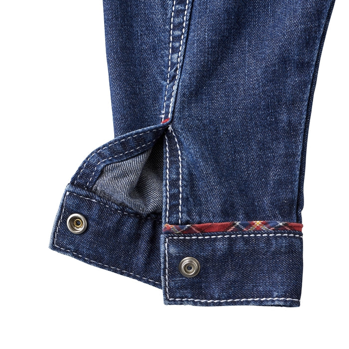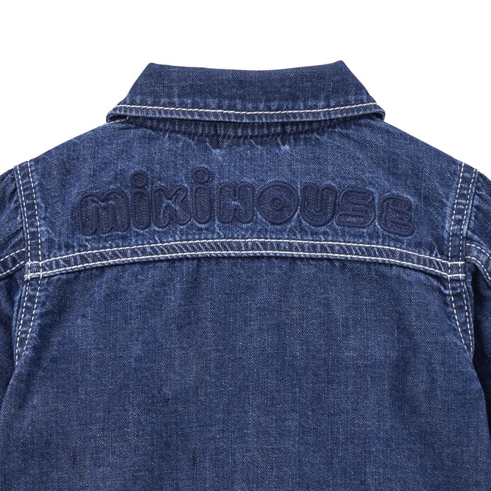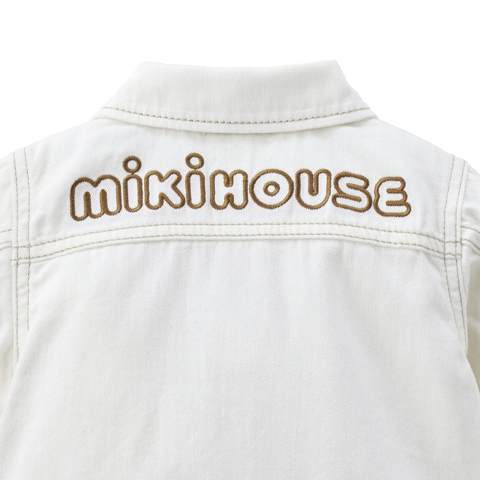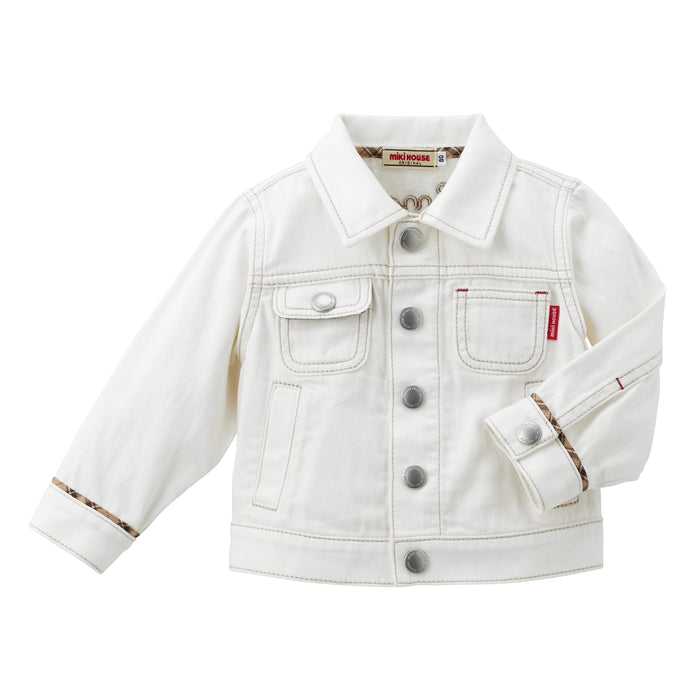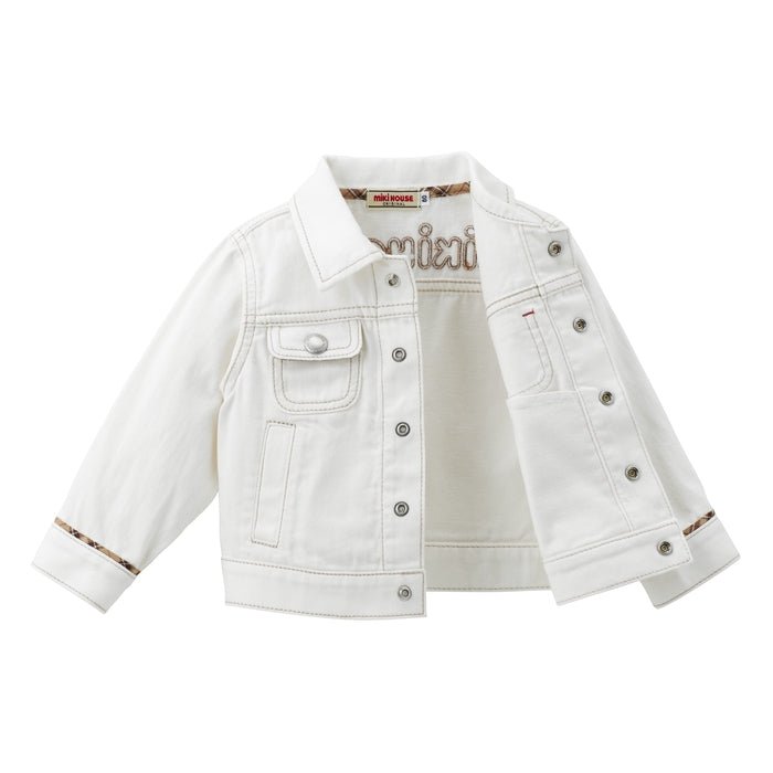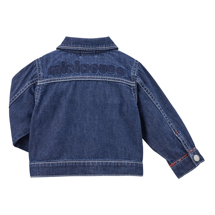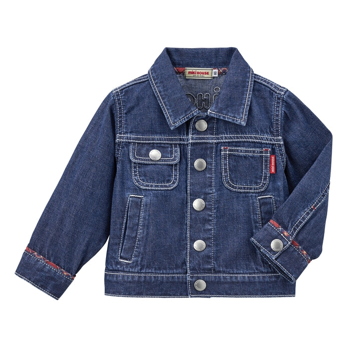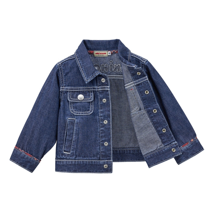 A timeless favorite with a playful twist - this soft, lightweight denim jacket features a standout MIKI HOUSE back logo for a bold yet polished look. Flaunting a peek of MIKI HOUSE plaid on the collar, sleeves and pocket flaps, this versatile essential offers all-day comfort and effortless charm. Complete the chic look with the matching denim pants (10-3205-490) from the same collection.