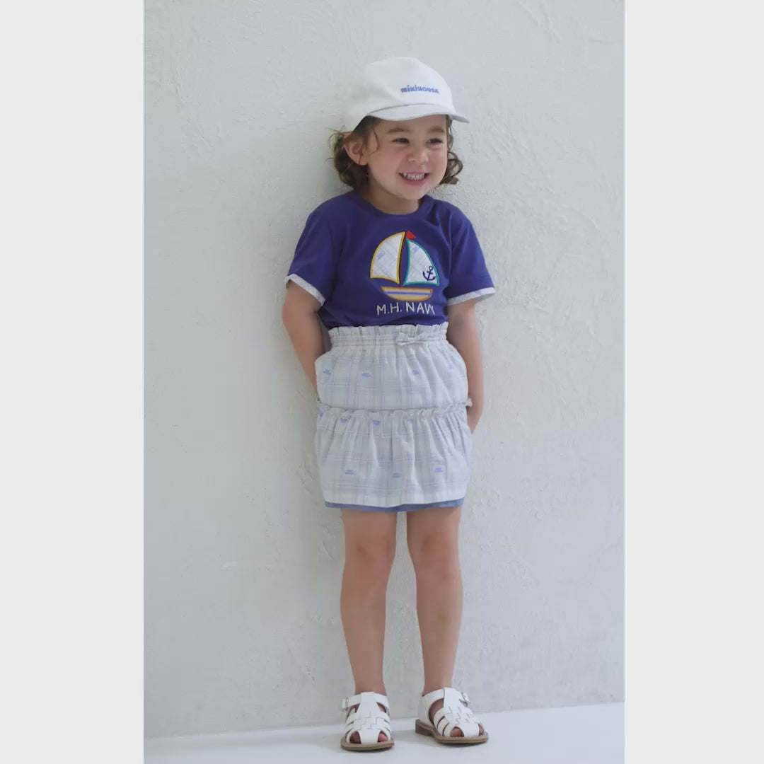 Elegance knows no bounds when it comes to signature MIKI HOUSE plaid. The pure simplicity of the baby blue logo embroidery against the pristine white background is uplifted by the unexpected plaid. Designed to effortlessly top off clean-cut looks, this chic cap reveals the style in simplicity.