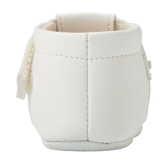 Tiny steps start in noble style with these pristine white pre-walking shoes emblematic of MIKI HOUSE know-how, featuring a refined tassel loafer design. Expertly crafted in high quality materials for year-round wear, they are specially designed for babies just beginning to crawl and stand. A meaningful keepsake, they make a thoughtful gift to celebrate this milestone.