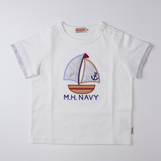 A playful nod to seaside adventures, this T-shirt features a softly padded yacht motif that captures the spirit of sailing days. Thoughtful touches of MH plaid on the sail and sleeve edges lend a polished finish. The soft jersey fabric feels gentle against the skin, making it an easy choice for everyday wear and special outings alike.