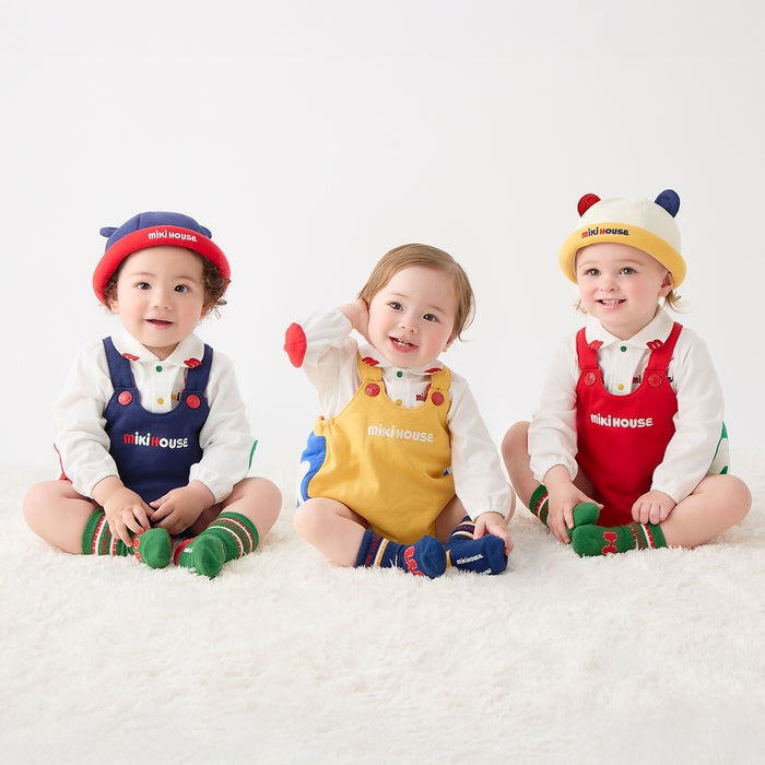 Bring on the vintage vibes! This retro-inspired romper features bold, iconic MH logo patches on the sides and a playful, rounded silhouette that’s perfect for little active movers. Crafted in soft, cozy mini terry fabric, it’s ideal for cooler days and super gentle against delicate skin. Adjustable shoulder straps and convenient snap closures make changes a breeze. Part of the standout New Logo Collection, it’s a fun pick for gifting or coordinating sibling outfits in classic MIKI HOUSE style.