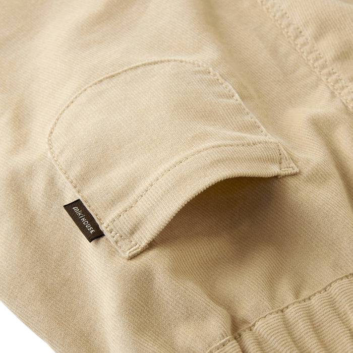 There are no buttons or zippers in MIKI HOUSE Pants. They are designed so that it’s easy to wear and the waistband holds the pants on the waist all the time.