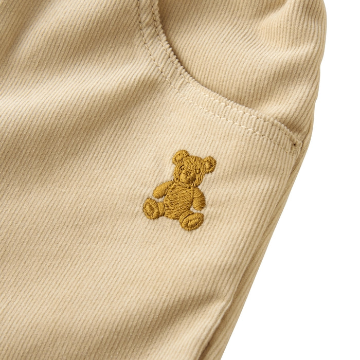 Cozy up in style with these corduroy pants, where classic warmth meets sweet details. Our iconic teddy bear emblem adds sophisticated charm, while the soft, toasty fabric keeps legs snug all season long. Designed for all-day comfort with an elastic, size-adjustable waistband, plus handy pockets for tiny treasures. Each chic color features its own unique twist, perfect for mixing and matching with teddy bear emblem tops from the same collection.