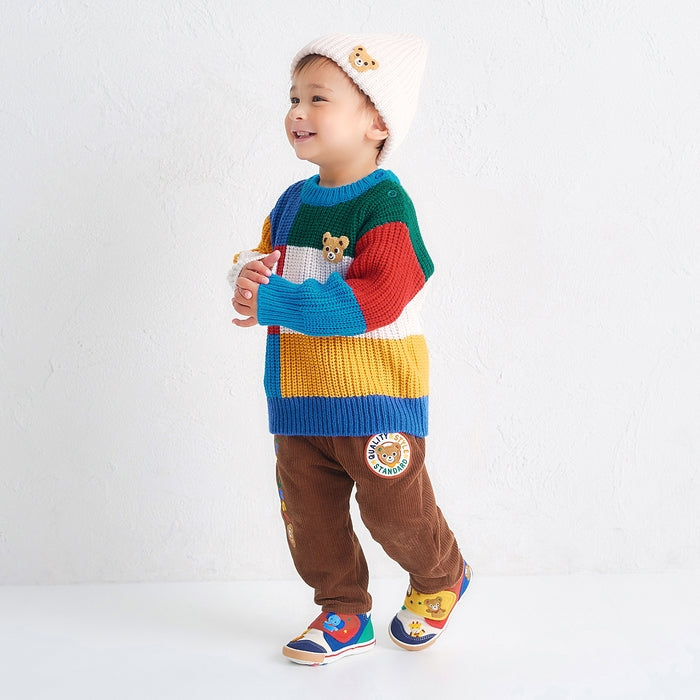 Embrace cozy autumn adventures with these knit cord pants, featuring a simple color palette accented by our signature MIKI HOUSE logo and an adorable Pucchi patch. Made from soft, lightweight knit corduroy with excellent stretch, they provide all-day comfort and freedom of movement. With an adjustable waistband and practical pockets, they’re perfect for everyday play and seasonal outings.