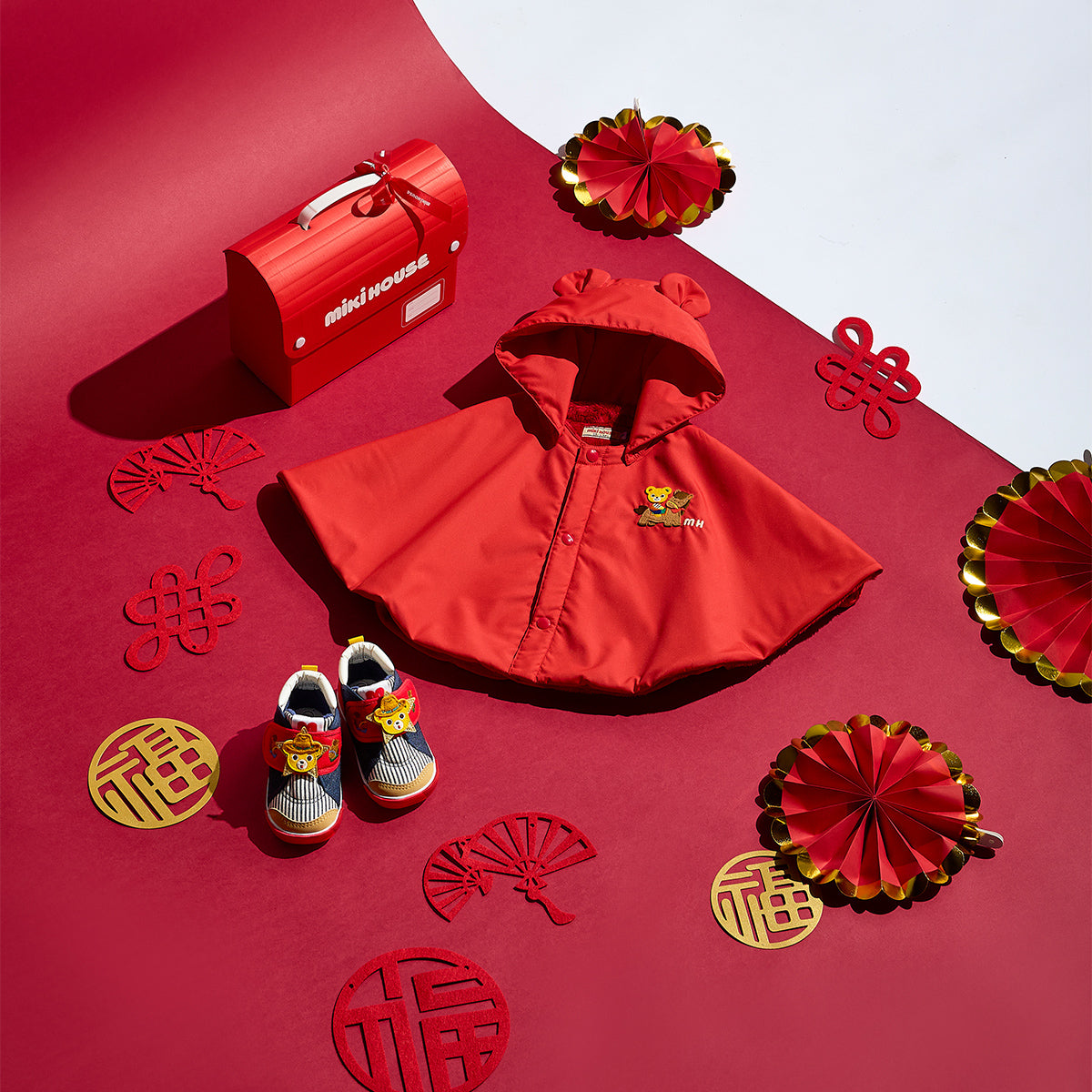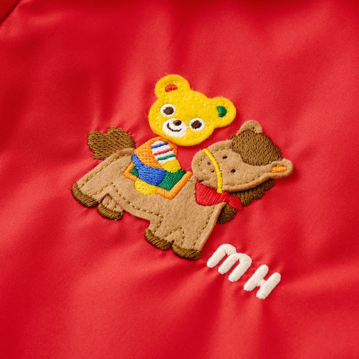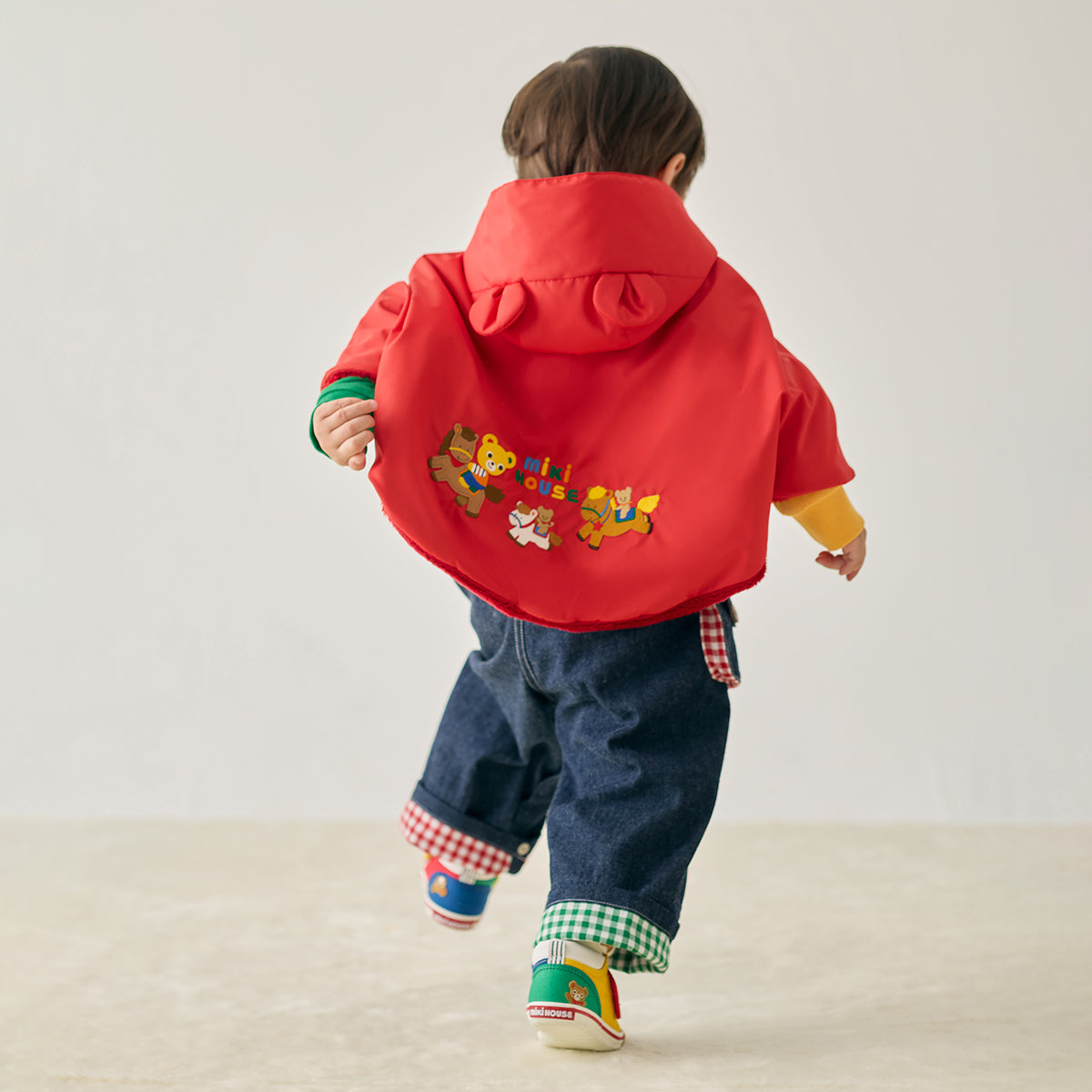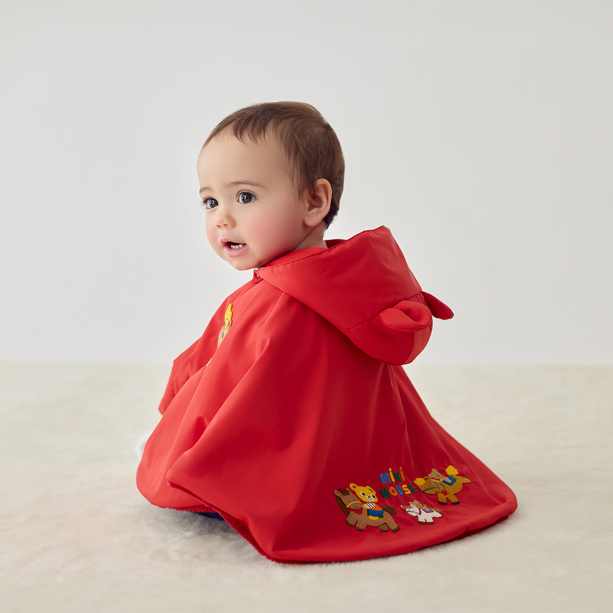 Gallop into style with the latest from our fan-loved Zodiac Collection! This dramatic horse-inspired design features Cowboy Pucchi riding on a horse - a symbol of success and victory - against a Chinese New Year red backdrop. This cape with detachable hood features a polyester taffeta exterior to block wind effectively with a soft microfur inner lining for cozy warmth. Featuring playful cowboy details, these unique second shoes are a statement-making blessing for your little one’s Year of the Horse.