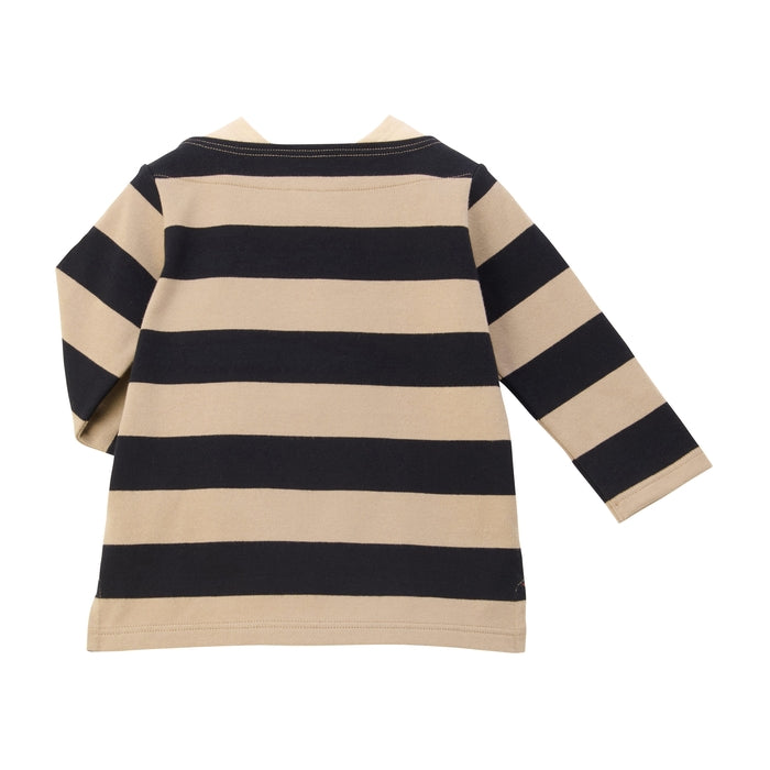Make a statement without saying a word. This timeless long-sleeve T-shirt pairs stripes with elegant color schemes, striking the perfect balance between simplicity and bold. Featuring a boat neck and layered-look detailing at the collar and cuffs, it effortlessly cultivates sophistication while remaining easy to style. The soft inner lining adds all-day comfort, while the clean silhouette makes it ideal for everything from casual outings to layered seasonal looks.