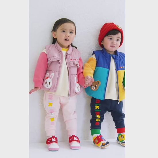 Sweet frills meet cozy thrills in this pretty, pink padded vest. Featuring bold Usako motifs and girly frill details, it’s filled with a high-performance hybrid material that offers moisture-absorbing warmth, odor control, and anti-static properties - everything you could ever need to keep your little sweetheart cozy and fresh during active play. Lightweight and versatile, it’s the perfect water repellent layering piece for in-between seasons.