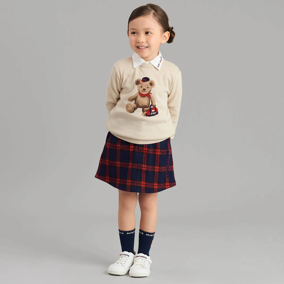 A cozy sweater from the Golf Collection, featuring lovable MIKI HOUSE Bear all set for a day on the green with his golf bag. From his fluffy fur to the playful details, this preppy essential brings a touch of whimsy to any outfit - on or off the course. Team with the Royal Academy Checkered Skirt (13-1701-498) or the Royal Academy Checkered Pants (13-3209-493) for the perfect golf-inspired look.