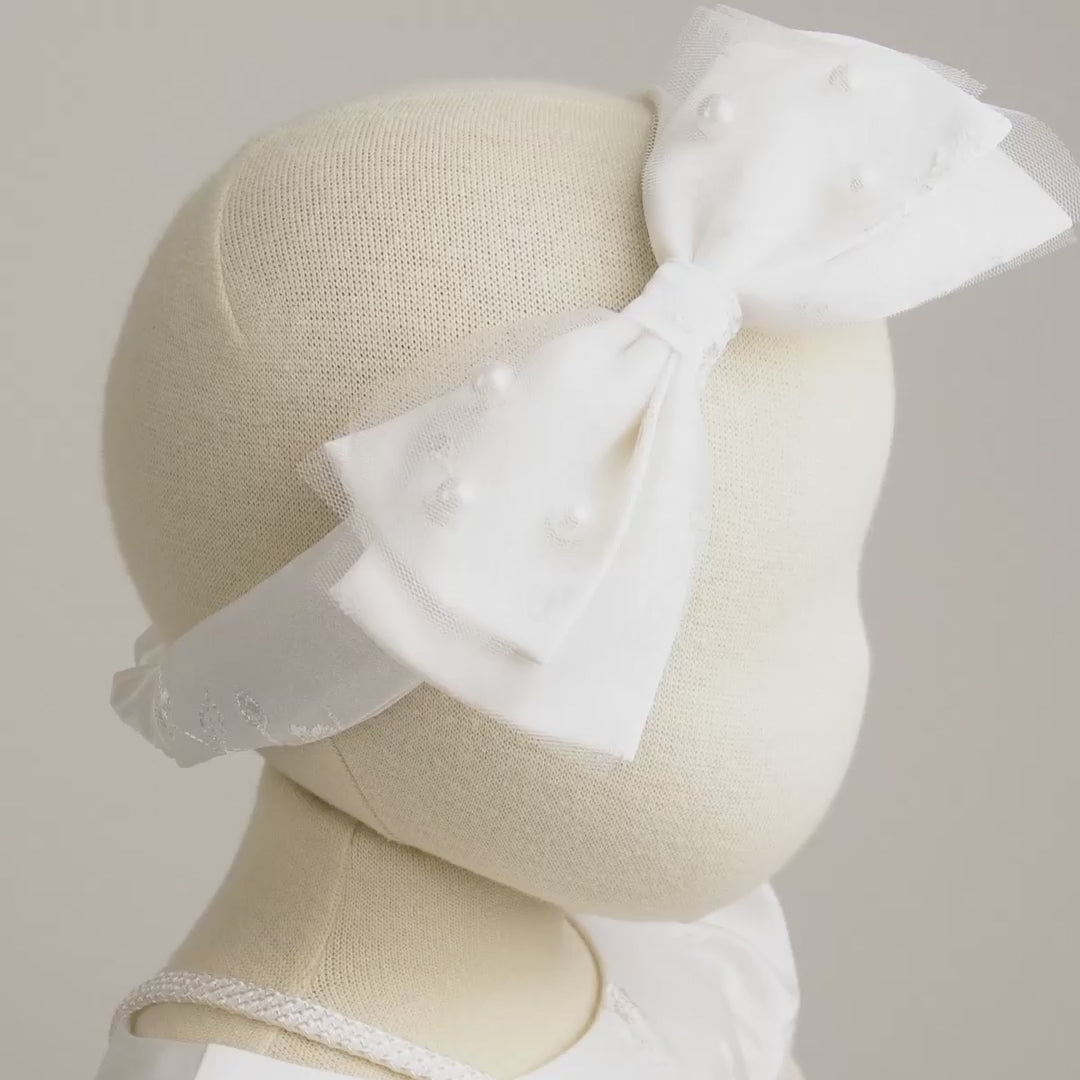 An elegant satin hairband crafted with meticulous attention to detail—from the selection of fabric to the embroidery and decorative motifs.