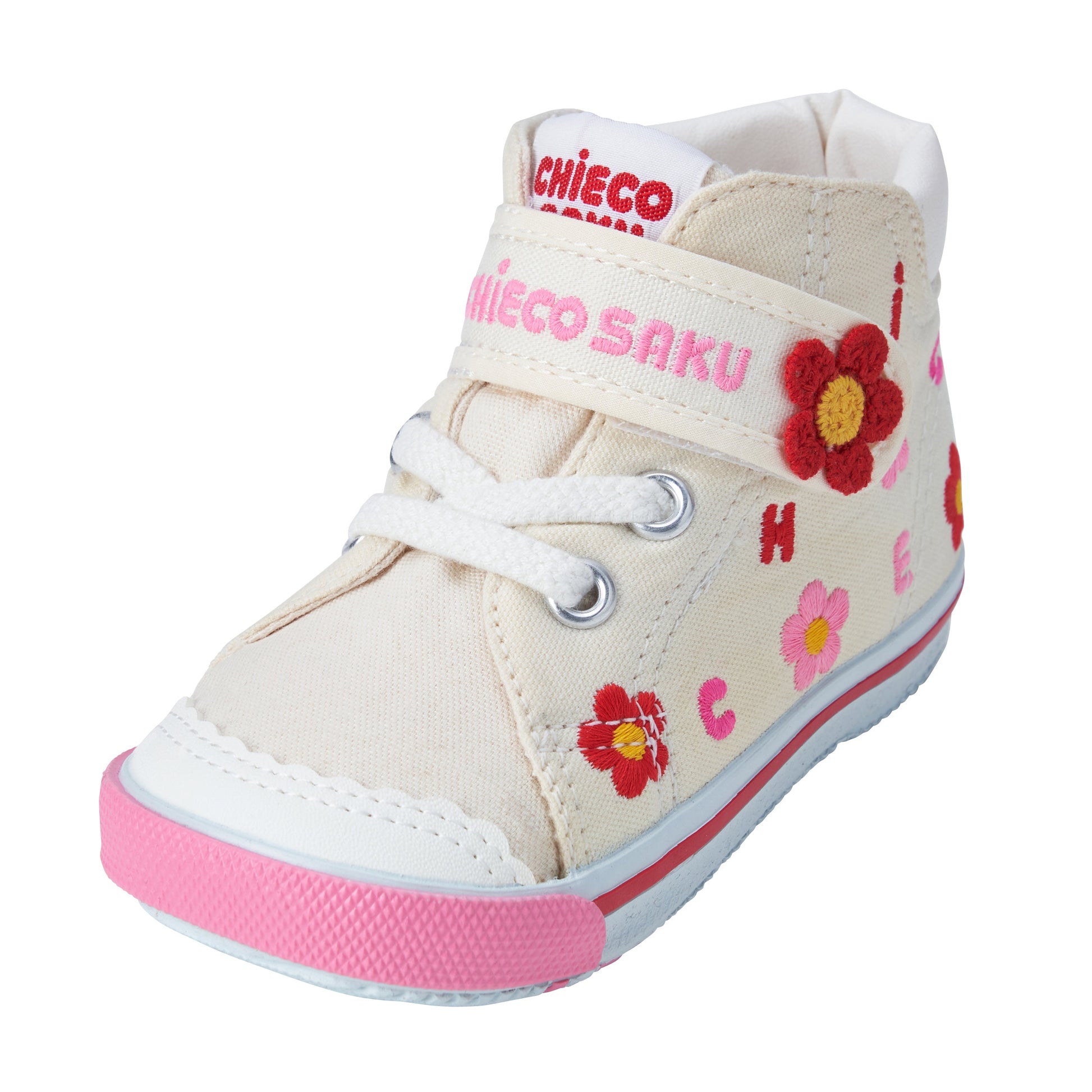Delight in every step with the sweetest second shoes, featuring playful embroidery of flowers and the CHIECO SAKU logo dancing across the upper. Soft, gentle fabrics cradle little feet, while scalloped toe caps and floral applique on the straps add a storybook-inspired touch. Functional details like a flex sole, contoured counter, and cushioned interiors combine everyday wearability with imaginative design.