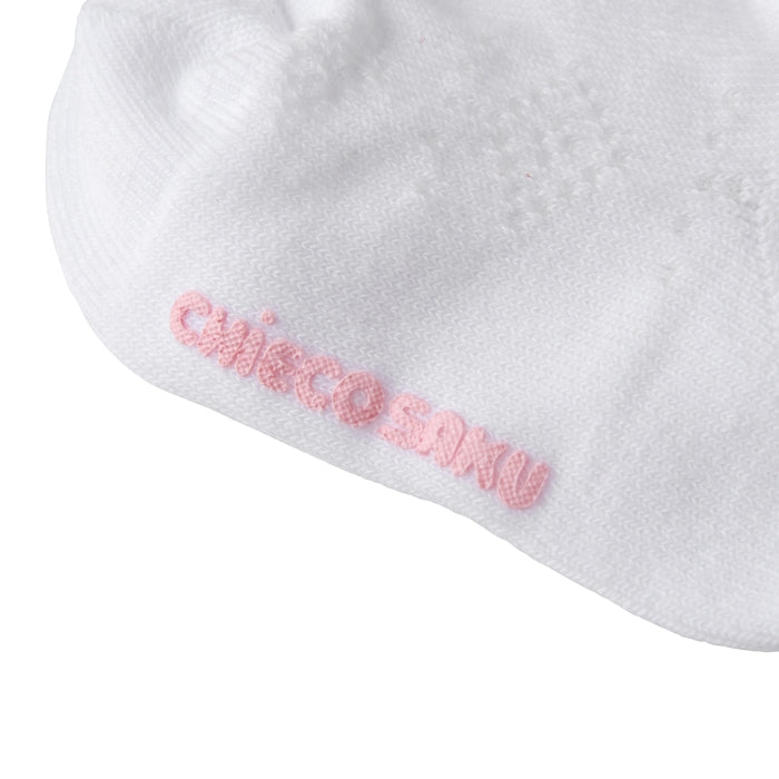 Inspired by sparkling sunlight dancing through clover leaves, these socks are lovingly crafted in CHIECO SAKU’s exclusive eyelet lace. These socks delicate reflects this magical yet fleeting moment, featuring clover-shaped cutwork framed with fine embroidery to create an airy, refined look. The plush 3D CHIECO accent lends a precious charm, making them a beautiful choice for summer styling or dressier occasions.