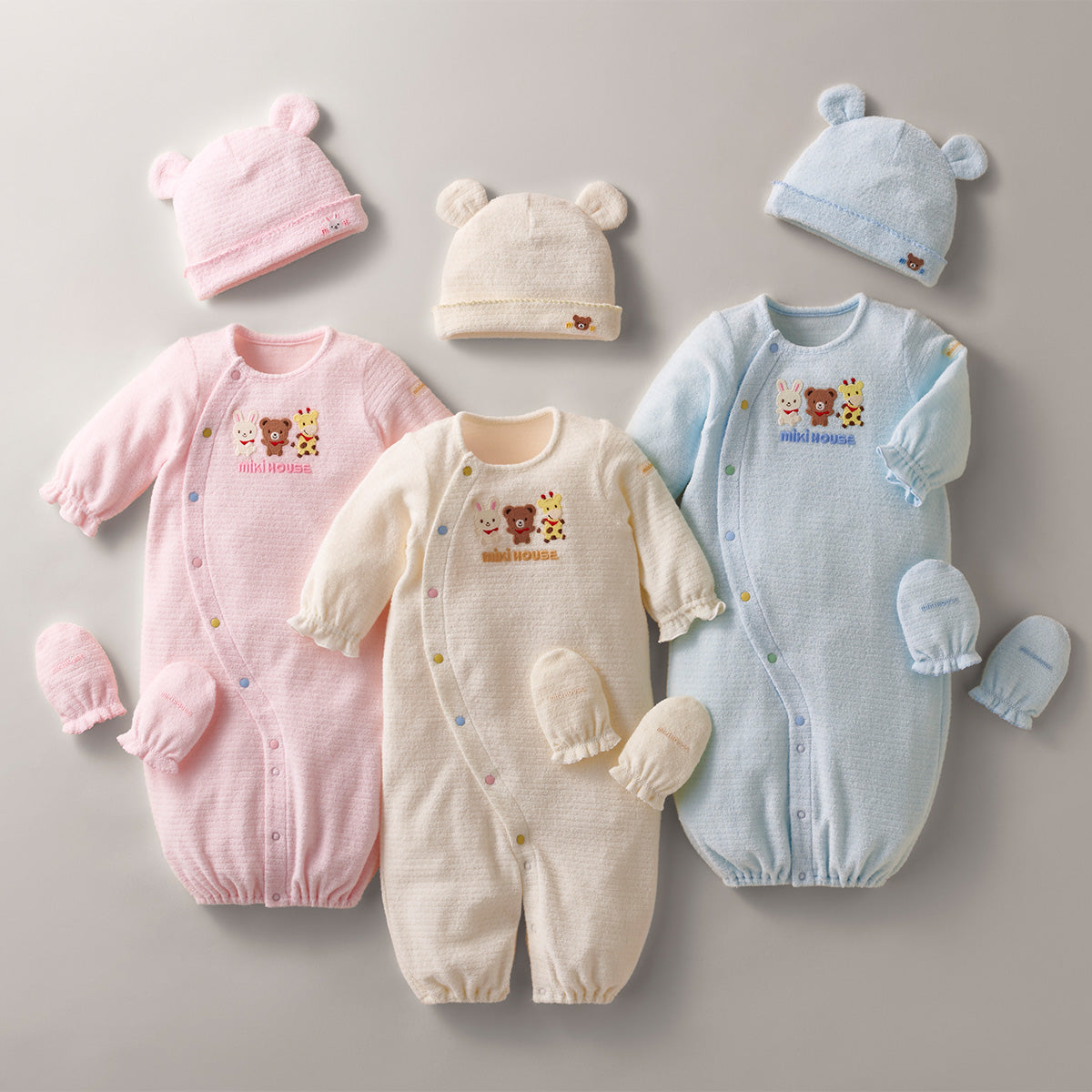 Super fluffy 100% untwisted yarn cotton hat for newborn babies. High water absorbency keeps skin clean and dry, too. MIKI HOUSE Baby Collection uses the best materials and craftsmanship.