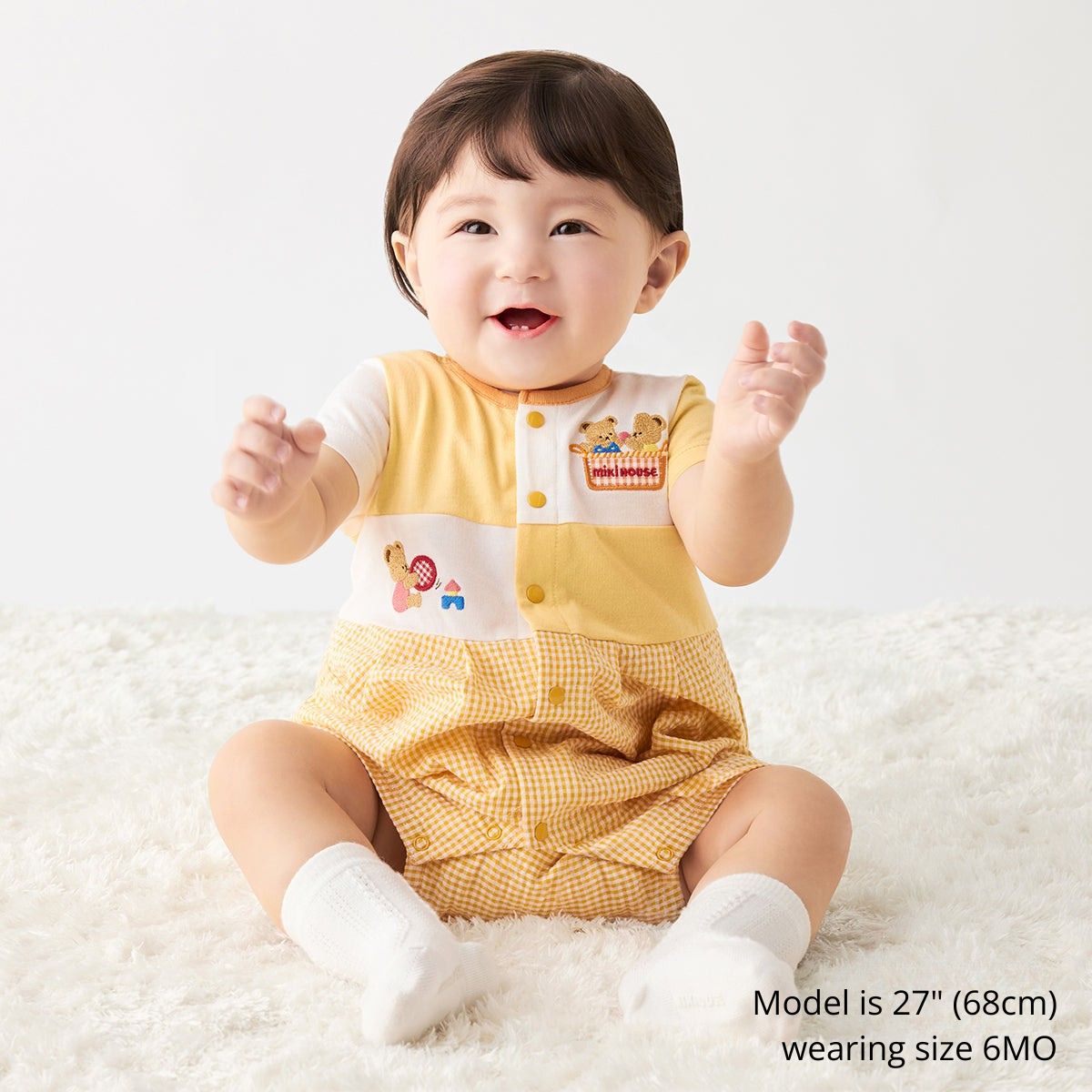 Hot days call for these blissfully breathable gingham rompers. Playful bear embroidery adds a MIKI HOUSE touch to the soft pastel cotton and textured seersucker. With the snap crotch buttons for easy diaper changes, this all-in-one look is the easy choice for family outings.