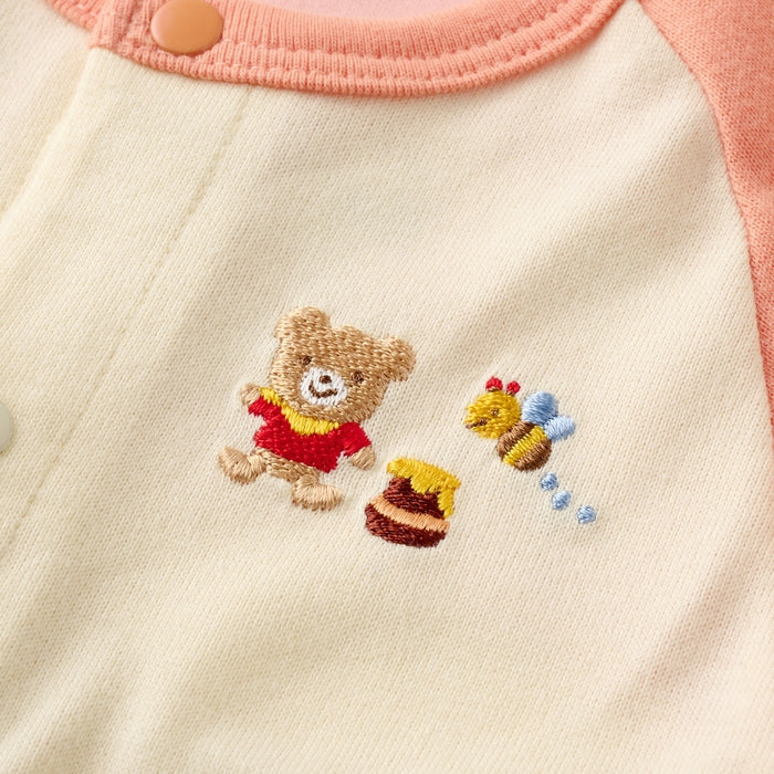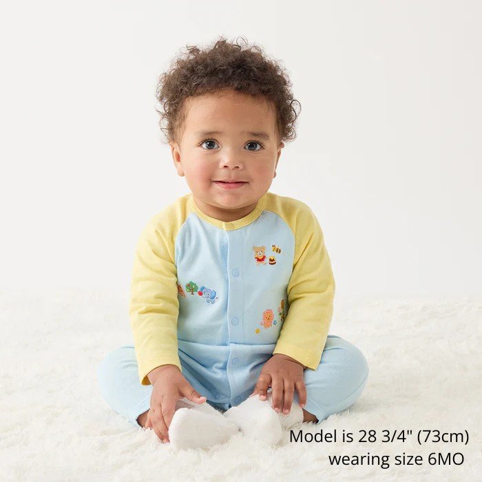 Let the cutest crew in the animal kingdom keep your little one cozy! This delightful long‑sleeve coverall showcases an all-star lineup of animal embroidery, ready to cheer your little explorer on through every wiggle and giggle. Crafted from cloud‑soft cotton that offers year-long comfort, it features a roomy silhouette for easy movement. Layer under a wearable blanket or style with a matching bib to complete the snuggly look.