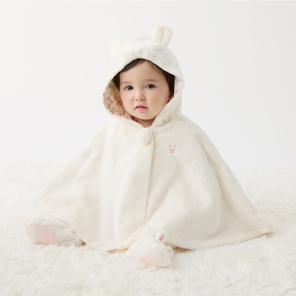 Cozy up in silky soft microfur. Filled with must-have staples of uncompromising quality, this gift set comes with mittens, a poncho, and long booties. It is the perfect gift set to elevate the everyday with MIKI HOUSE luxury.