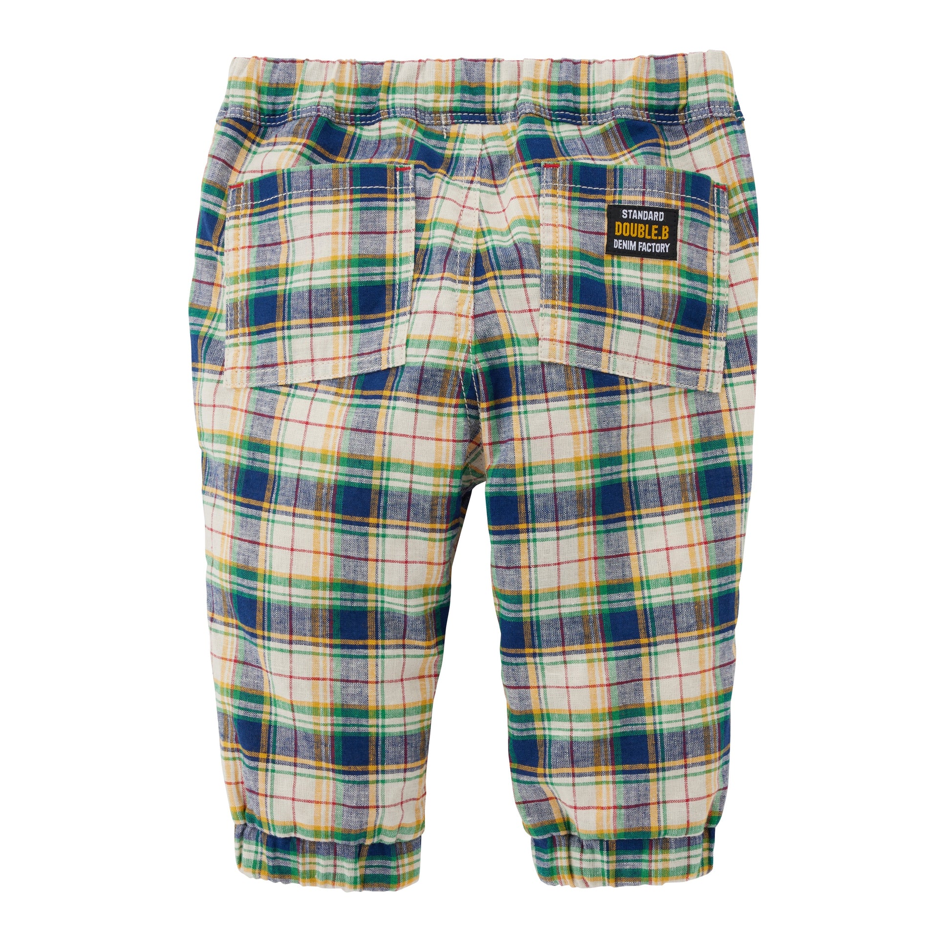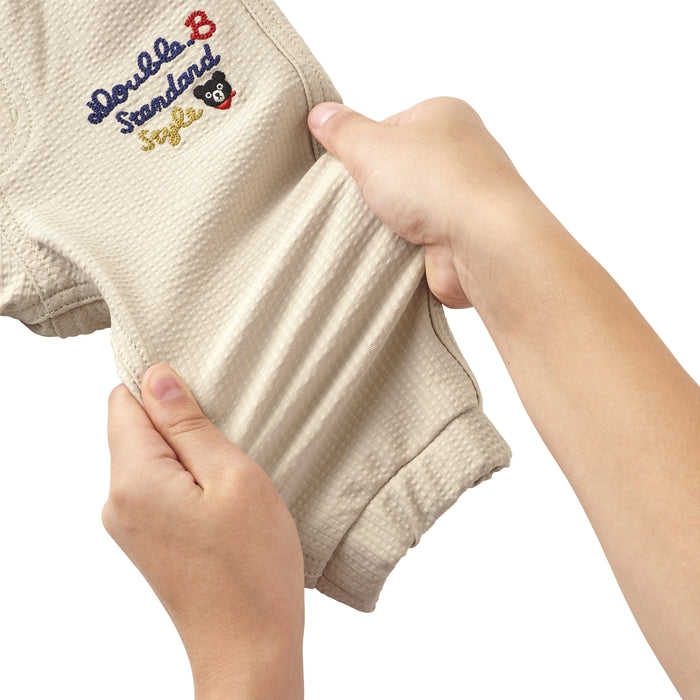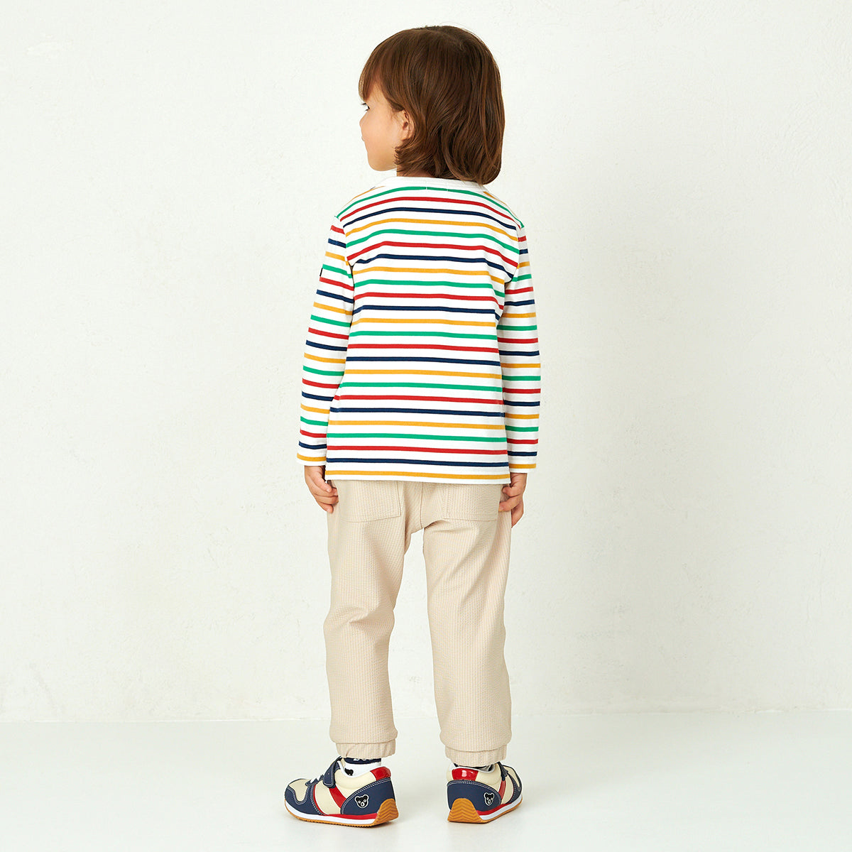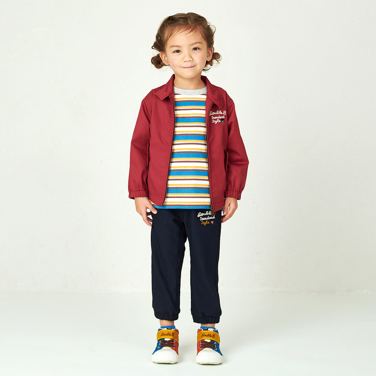 There are no buttons or zippers in MIKI HOUSE Pants. They are designed so that it’s easy to wear and the waistband holds the pants on the waist all the time.