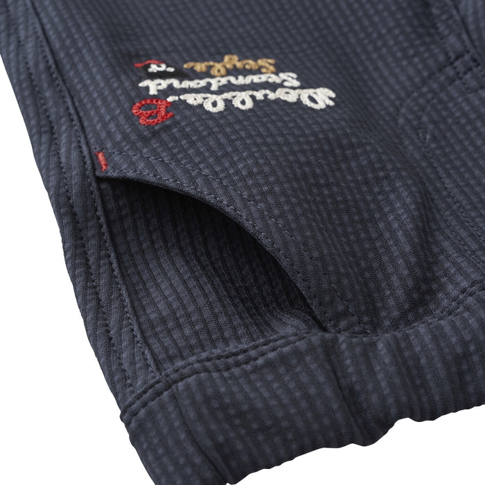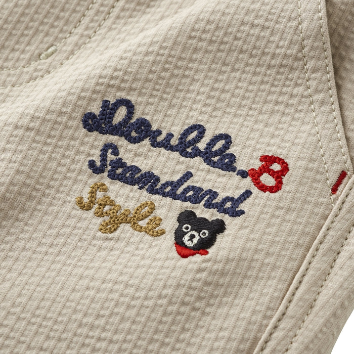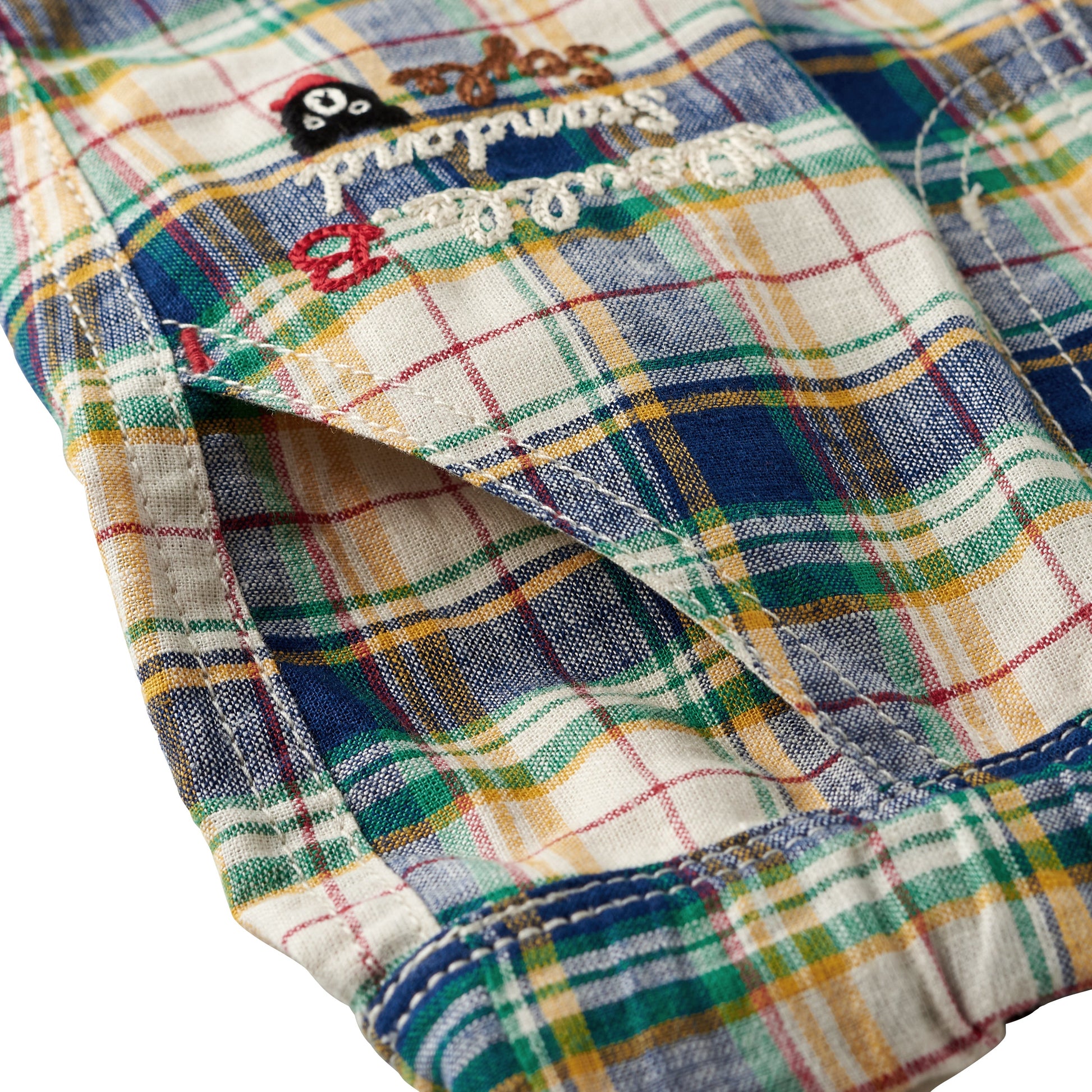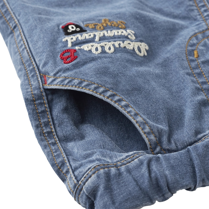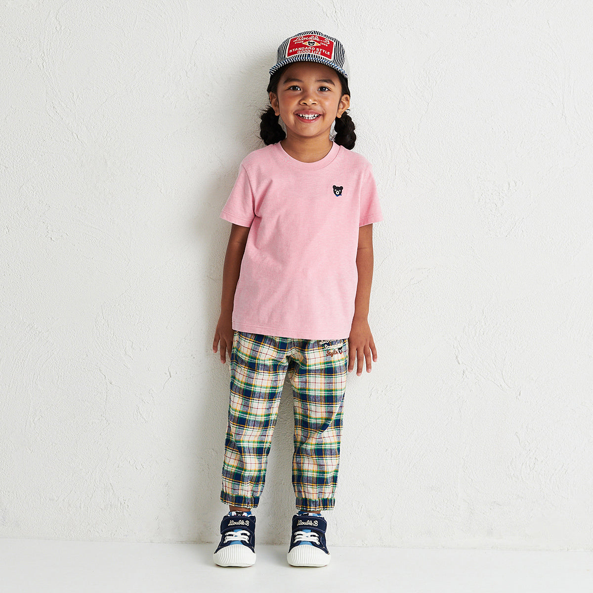 There are no buttons or zippers in MIKI HOUSE Pants. They are designed so that it’s easy to wear and the waistband holds the pants on the waist all the time.