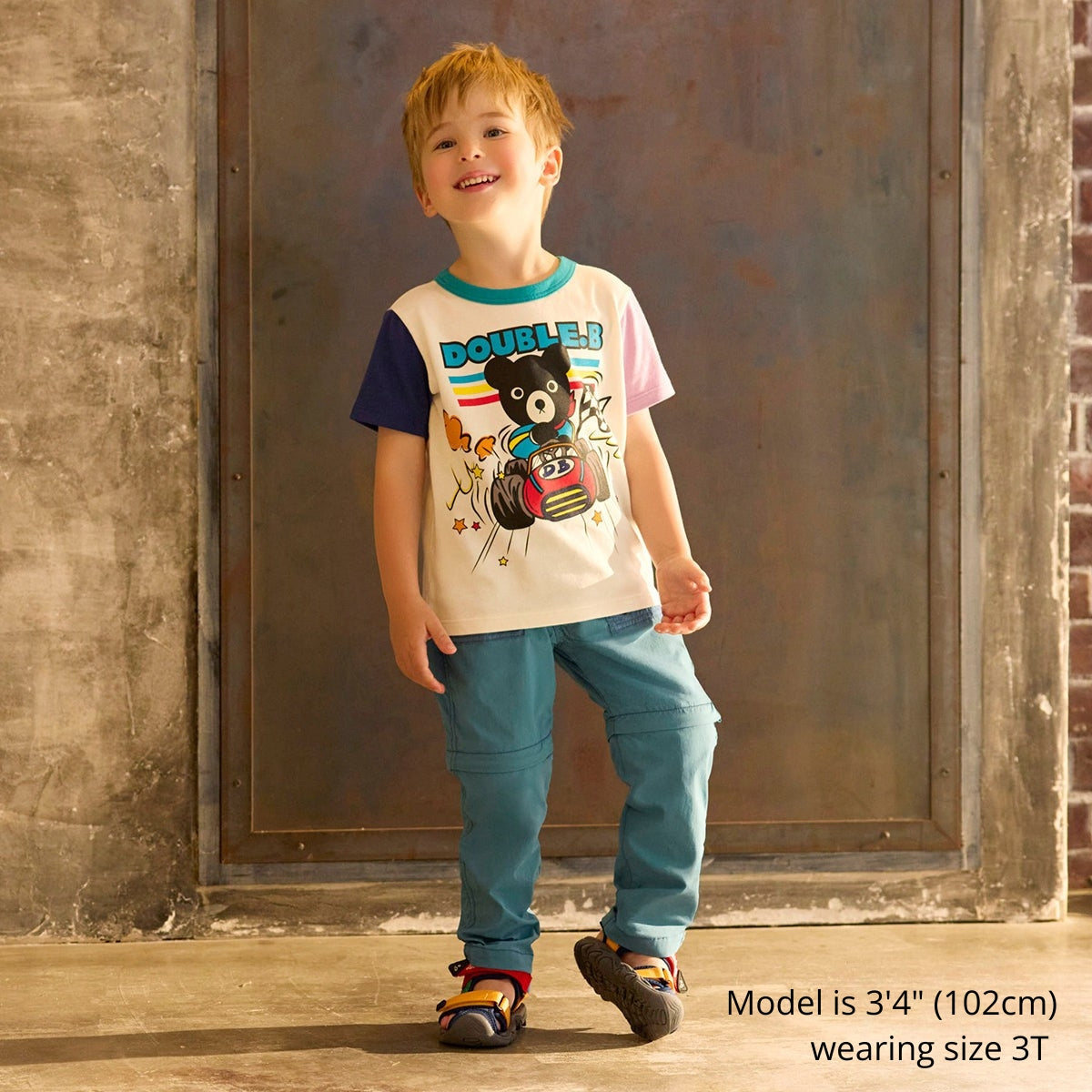 Gear up for action! These 2-way convertible pants from the DB Racing Collection unite fun, function, and full-throttle flexibility. With a quick zip above the knees, it shifts from long pants to breezy knee-length shorts, keeping up with your little speedster through summer and into early fall. Expertly crafted in lightweight, stretchy, smooth nylon, the bold, racing-themed details add dynamic punch to any DOUBLE_B get-up.