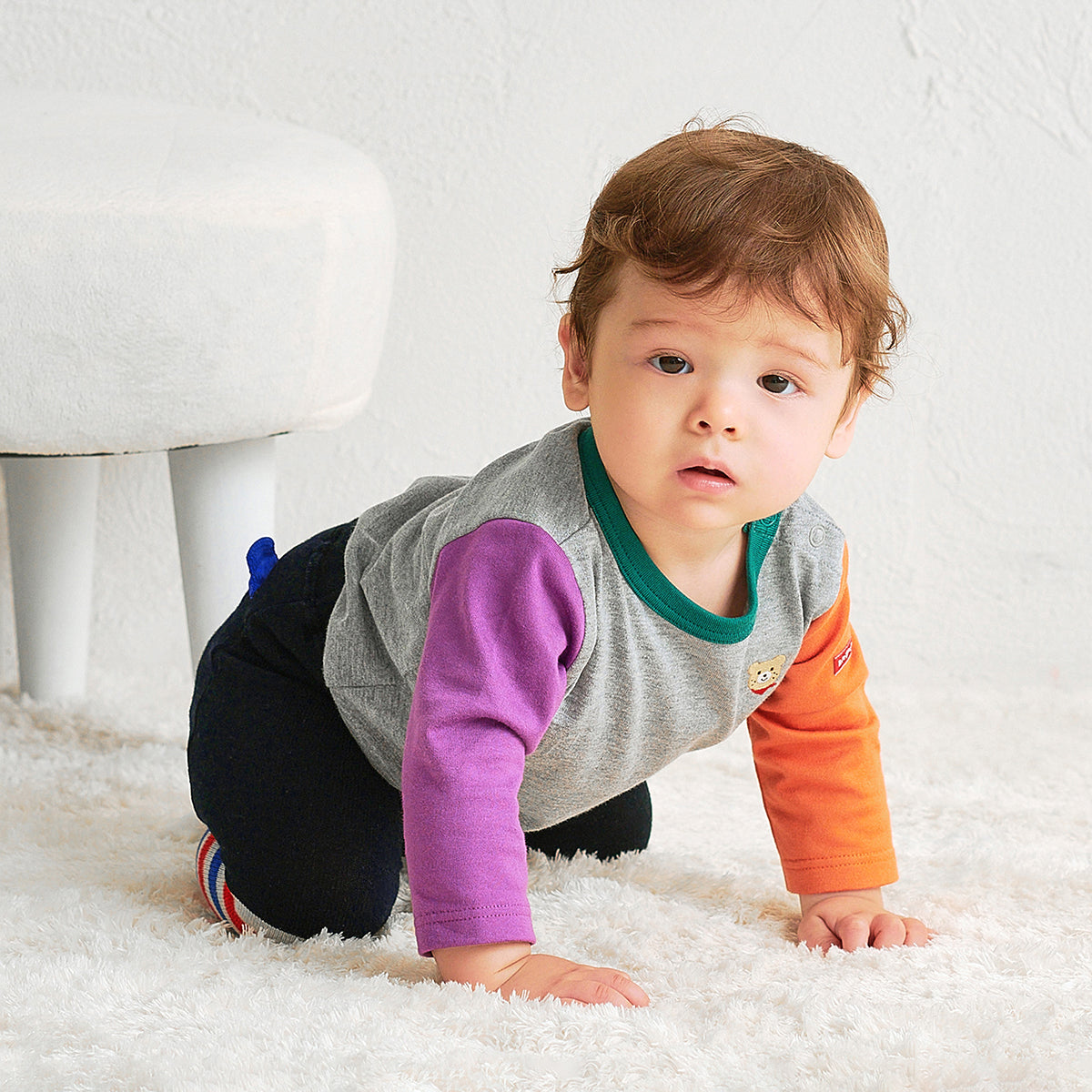 A pair of super stretchy ankle-length leggings featuring Beans’ forever cute smile. Designed for lasting comfort and easy dressing, it’s a lovable piece thoughtfully crafted with both children and parents in mind. The bear-shaped motifs on the knees add extra playfulness to your little one’s first attempt at non-onesie outfits.