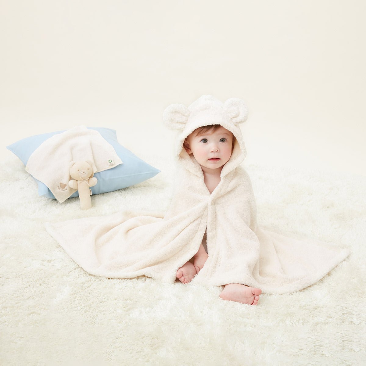 Made with 100% organic cotton, this luxurious hand towel is soft to the touch and gentle on the skin. With a discrete snap closure, it can be folded in half and used as a bib. The lightweight, yet absorbent material is perfect for this multi-purpose towel; a definite favorite for your little one!